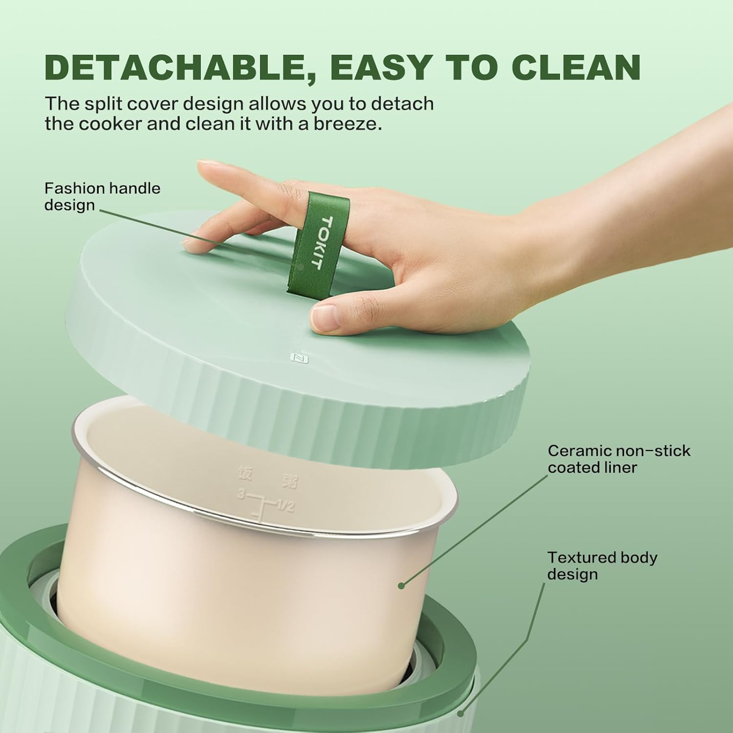 - Schlitzdeckel-Design - der obere Deckel des Reiskochers ist abnehmbar, sodass Sie den inneren Topf einfach herausnehmen und zur Reinigung direkt ins Wasser stellen können. Der Reiskocher hat ein Fassungsvermögen von 1,5 L und kann bis zu 3 Tassen kochen. Er ist klein und kompakt, hat aber eine große Kapazität.